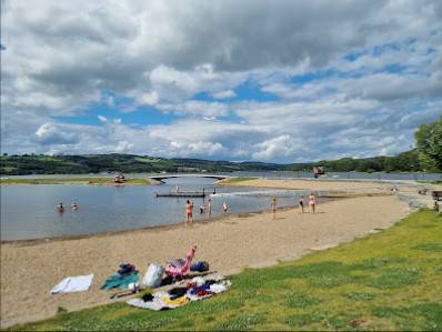 - Badeplass med strand, flytebrygge, basketballbane og skatepark