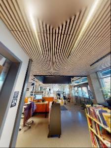 Biblioteket har en moderne og hyggelig atmosfære og er tilgjengelig for alle.