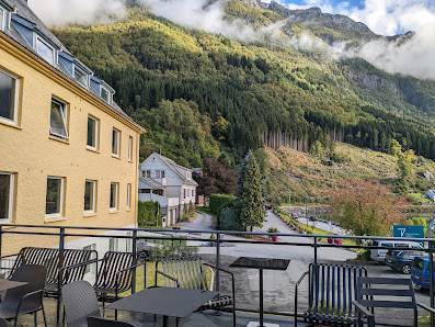 Koselig lite hotel som ligger sør av Odda sentrum. Litt trafikk på utsiden, men det høres nesten ikke pga elven som renner forby. Fantastisk god mat. Husk å bestill bord. Veldig populært. Hyggelig betjening. Rommet er okey.